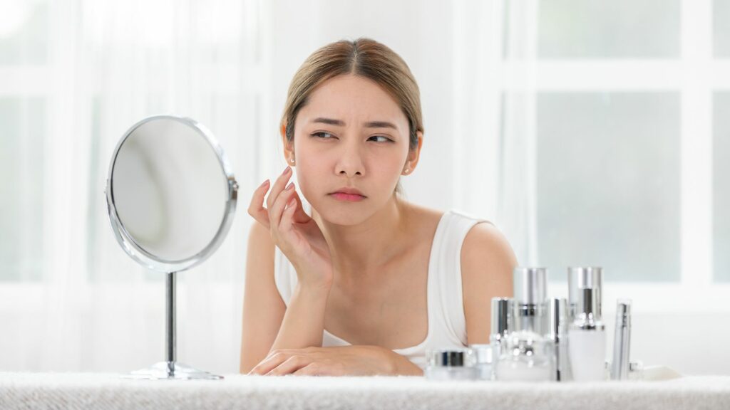 วิธีแก้: ใช้สารออกฤทธิ์แรงๆ ไม่เกิน 1 ชนิดต่อคืน อาจเริ่มจากทาเรตินอลความเข้มข้นต่ำ สัปดาห์ละ 2–3 ครั้ง จากนั้นเสริมด้วยมอยส์เจอไรเซอร์ที่มี Ceramide, Niacinamide เพื่อซ่อมแซมเกราะป้องกันผิว