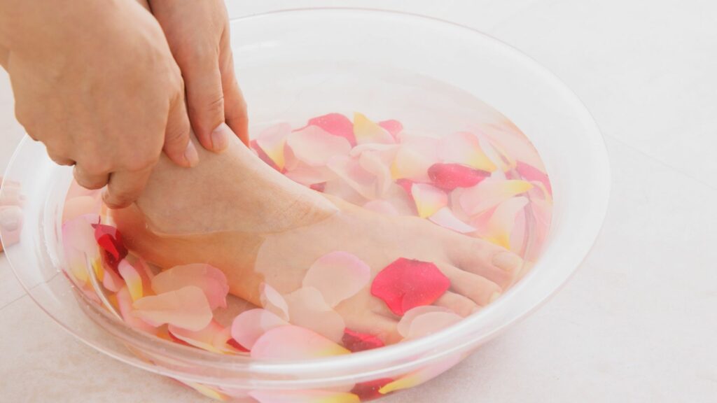 2.สูตรน้ำเกลือ : ใช้เกลือ 2–3 ช้อนโต๊ะผสมน้ำอุ่น แล้วแช่เท้า 15 นาที ช่วยลดกลิ่นและทำให้ผ่อนคลาย