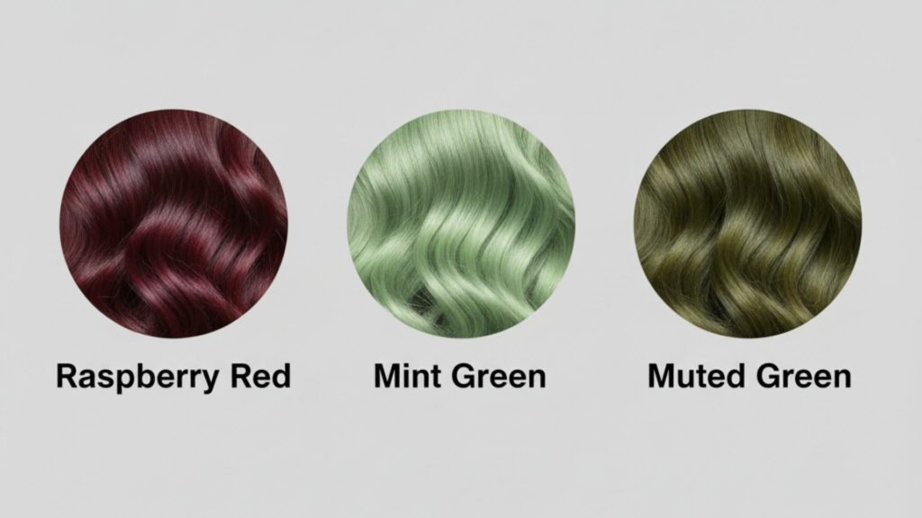 • สี Mint Green / Muted Green (เขียวมินต์–เขียวหม่น) สีเขียวโทนหม่นช่วยบาลานซ์กับผิวแทนได้ดี ทำให้หน้าดูไบรท์ ไม่หม่นหมอง