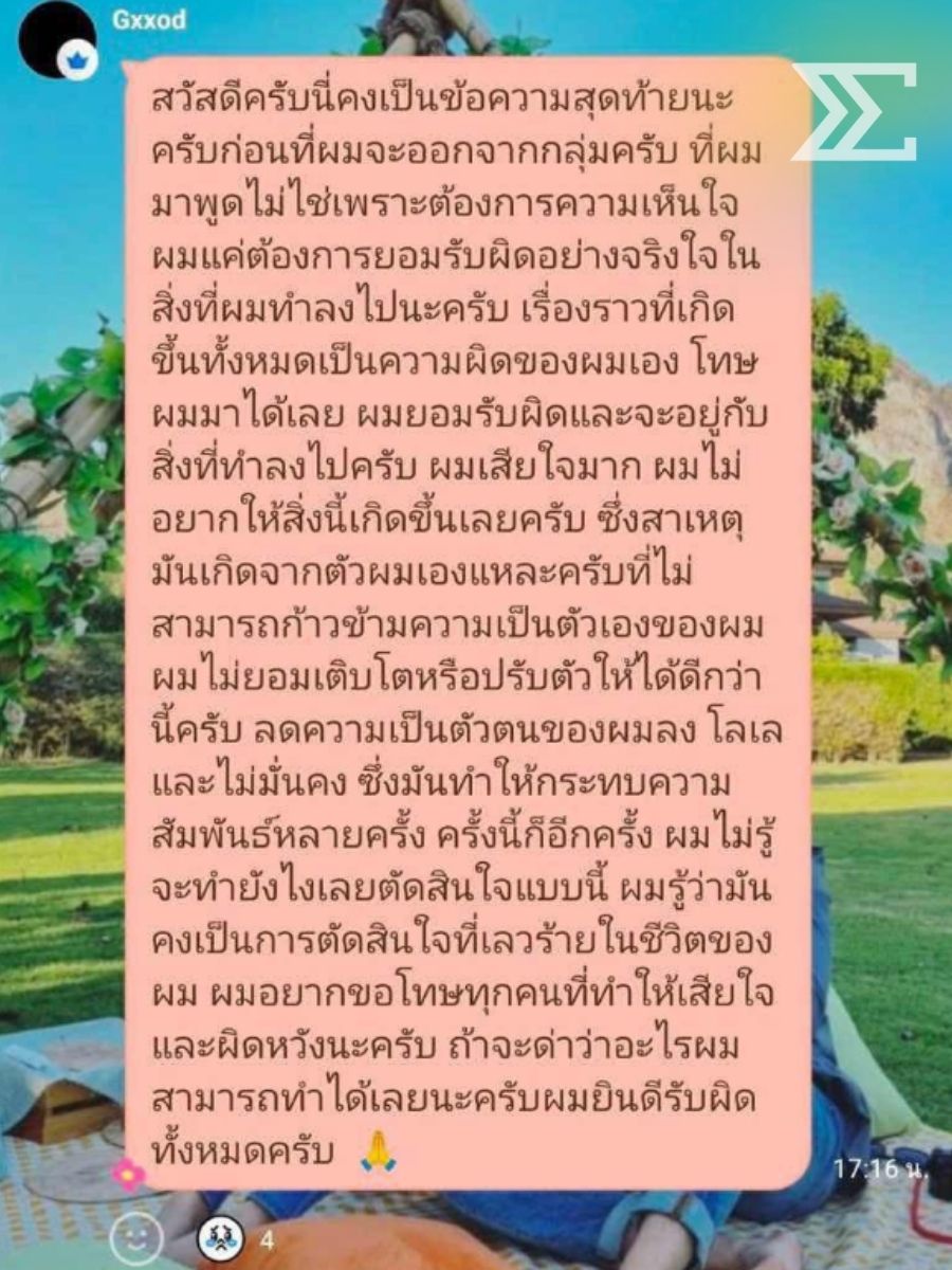 ต่อมามีความเคลื่อนไหวที่ทำเอาหลายคนช็อกไปเลย เมื่อ ก็อต ส่งข้อความถึงกลุ่มแฟนคลับเพื่อขอโทษอย่างจริงใจที่ทำให้ทุกคนผิดหวัง ยอมรับว่าความผิดทั้งหมดเกิดจากตัวเองที่ “ไม่มั่นคง โลเล และไม่สามารถก้าวข้ามความเป็นตัวเองได้” จนกระทบความสัมพันธ์หลายครั้ง จึงเป็นที่มาของการตัดสินใจที่เลวร้ายที่สุดในชีวิตครั้งนี้ และได้ไปขอโทษต่อหน้าริชชี่ และคุณพ่อของริชชี่แล้ว เพื่อแสดงความรับผิดชอบต่อสิ่งที่เกิดขึ้น