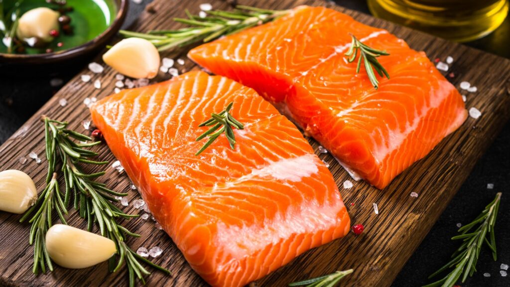 5. ปลาทะเลน้ำลึก อย่าง แซลมอน, แมคเคอเรล อุดมด้วยกรดไขมัน โอเมกา-3 ที่ช่วยลดการอักเสบและช่วยปรับปรุงความไวของอินซูลินในร่างกาย งานวิจัยหลายฉบับพบว่า ผู้ที่บริโภคโอเมกา-3 เป็นประจำ จะมีอัตราไขมันในร่างกายน้อยกว่าคนทั่วไป