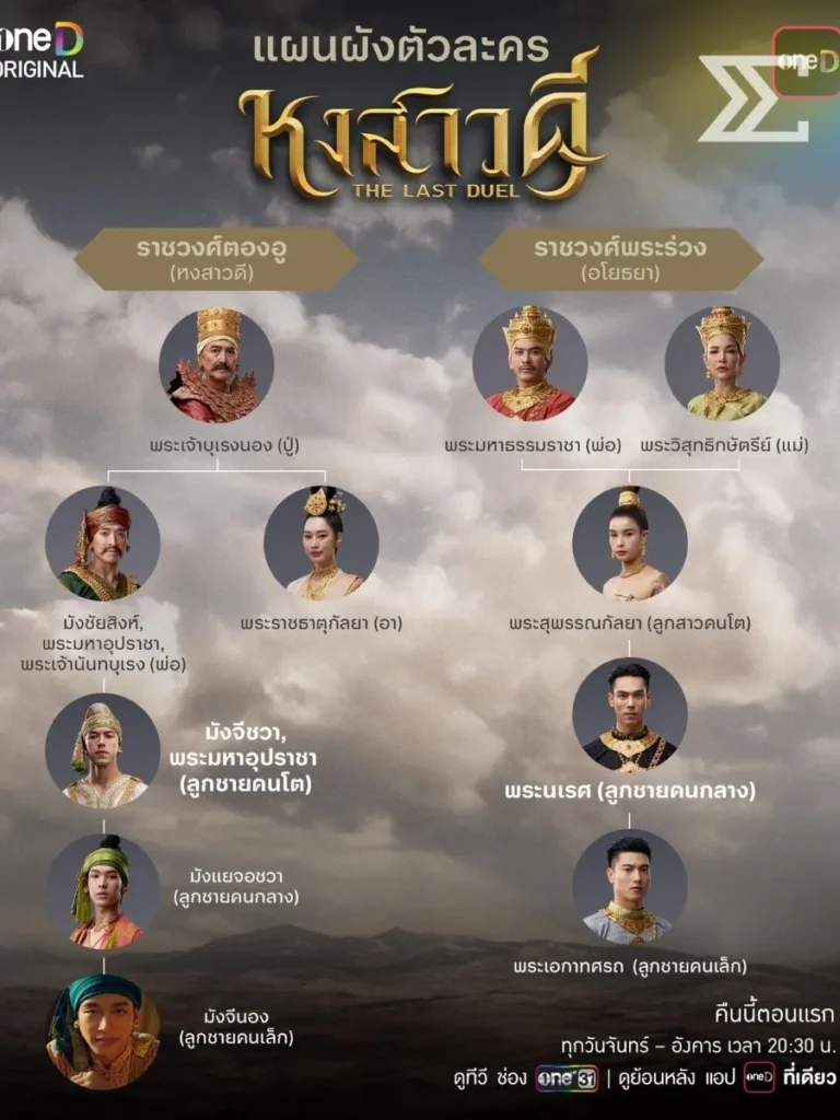 สามารถรับชม “หงสาวดี THE LAST DUEL” ได้ทุกวันจันทร์ – อังคาร เวลา 20:30 น. ทางช่องวัน 31 และรับชมย้อนหลังผ่านแอป oneD ที่เดียว