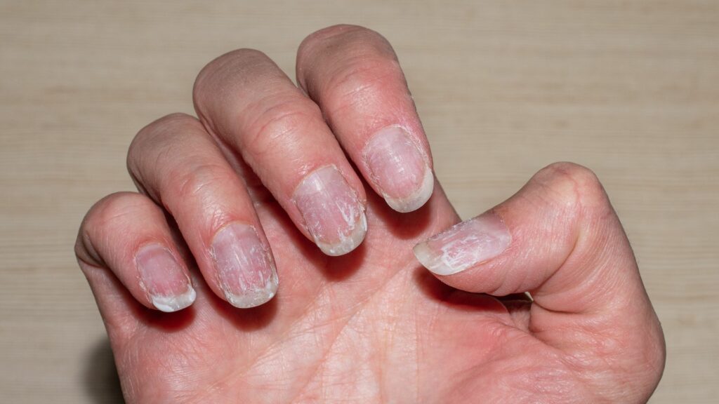 เล็บที่ติดเชื้อจะอ่อนแอ ฉีกหรือแตกหักได้ง่าย