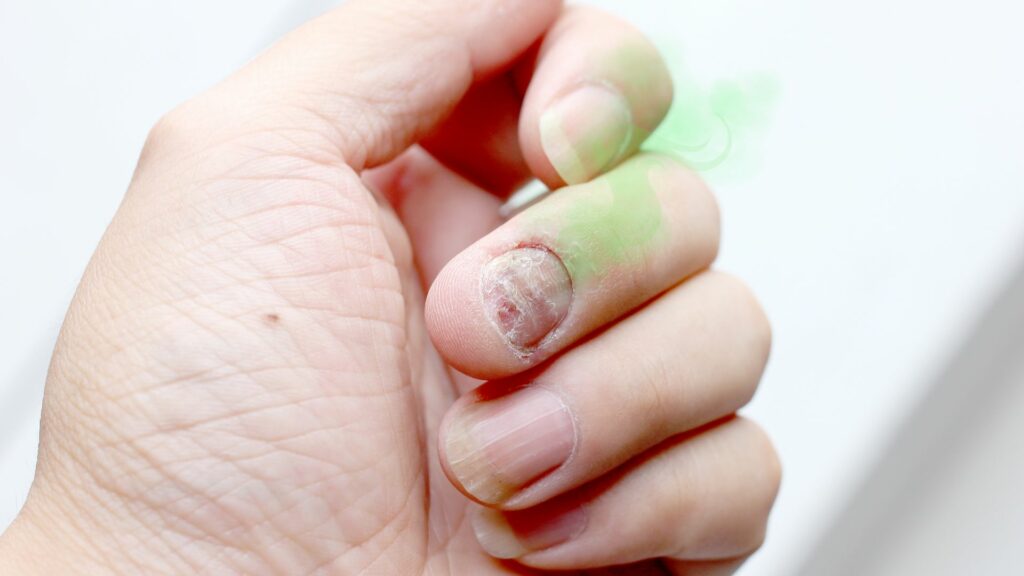 อาจรู้สึกเจ็บ โดยเฉพาะเวลามีแรงกดทับเล็บที่ติดเชื้อ