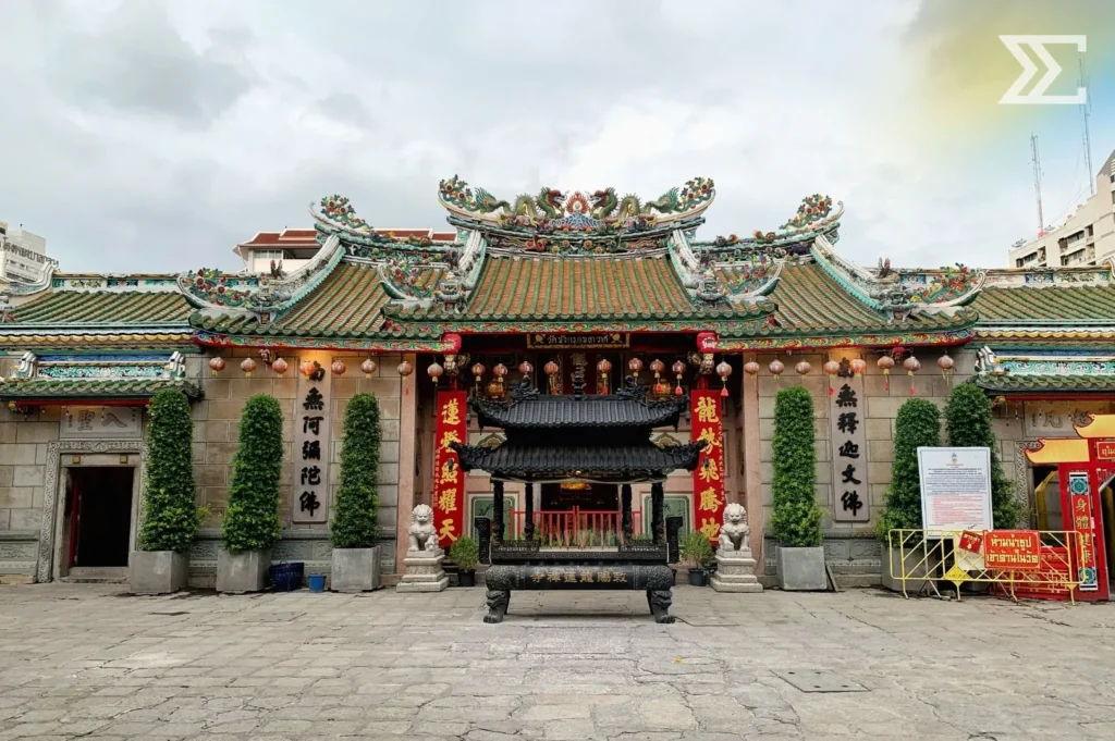 วัดจีนขนาดใหญ่ โทนพระราชวังจีนอลังการ มุมถ่ายรูปกว้าง ถ่ายง่าย ไม่เบียดคนเท่าย่านเมือง วัยรุ่นสายคอนเทนต์ชอบเพราะได้ภาพแดง-ทองชัดและองค์ประกอบดูยิ่งใหญ่