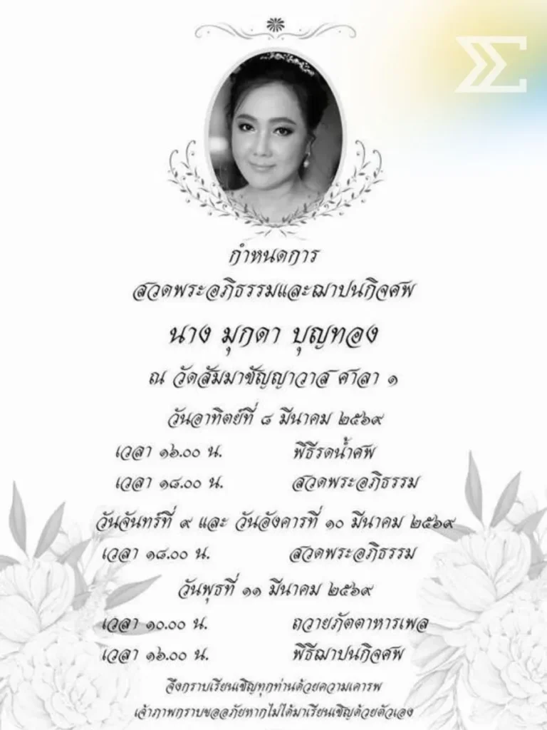 วงการบันเทิงร่วมไว้อาลัยต่อการจากไปของ “มุกดา บุญทอง” อดีตนักแสดงและนางแบบชื่อดัง ซึ่งเป็นภรรยาของ “หนึ่ง นึกคิด บุญทอง” โดยเธอได้เสียชีวิตลงอย่างสงบในวัย 61 ปี หลังต่อสู้กับโรคมะเร็งสำไส้มานานหลายปี