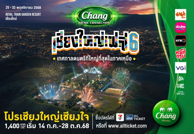 ปลายปีนี้ชาวเหนือและคนรักเทศกาลดนตรีมีเฮอีกครั้ง Chang Music Connection จับมือชวนทุกคนมาม่วนกันให้สุดกับ “เชียงใหญ่เฟส 6” เทศกาลดนตรีที่ประกาศกลับมาอีกครั้งในบรรยากาศกลางธรรมชาติที่ลงตัว งานสองวันที่อัดแน่นไปด้วยเสียงเพลงและกิจกรรมสำหรับคนทุกวัย