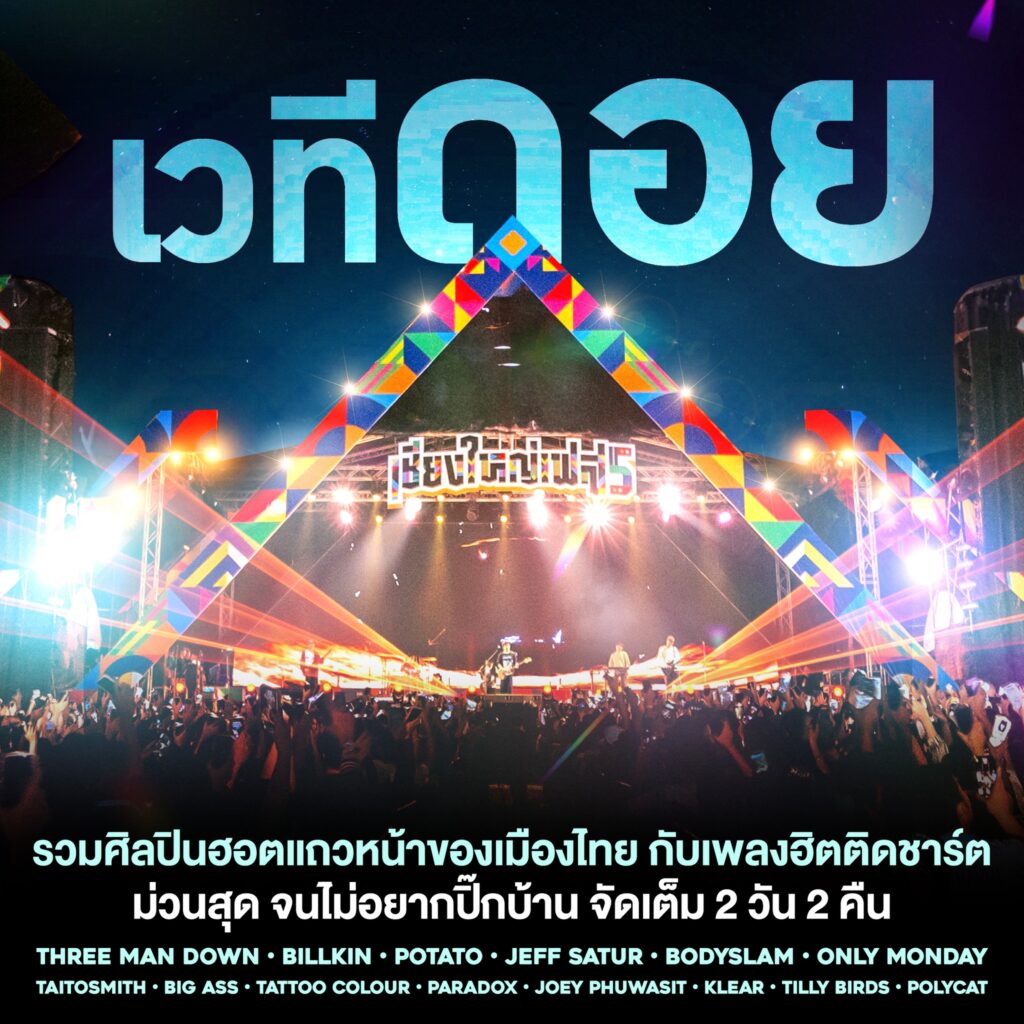 พื้นที่จัดงานถูกออกแบบให้ผสมผสานกลิ่นอายธรรมชาติของเชียงใหม่กับแสง สี เสียงระดับเทศกาล เมื่องานนี้ขนศิลปินหน้าใหม่และชื่อดังมารวมกันเกือบทั้งวงการ มากกว่า 44 ศิลปิน จะสลับกันขึ้นเวทีทั้ง 3 สเตจ สร้างเพลินทั้งสายอินดี้ ป็อป และร็อก ทั้งยังมีมุมเวิร์กช็อปและบูธกิจกรรมให้เดินชิล ถ่ายรูป และลองอะไรใหม่ๆ ระหว่างพักจากการกระโดดกับเพลงโปรดของคุณ