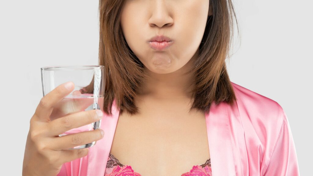 การดื่มน้ำให้เพียงพอสำคัญต่อทั้งร่างกายและสุขภาพฟัน หากร่างกายขาดน้ำ การผลิตน้ำลายจะลดลง เกิดภาวะปากแห้ง ขณะปากแห้งเชื้อโรคในช่องปากจะเจริญเติบโตเพิ่มจำนวนได้มากกว่า ผลที่ตามมาคือ เสี่ยงฟันผุ โรคเหงือก และมีกลิ่นปากมากขึ้น