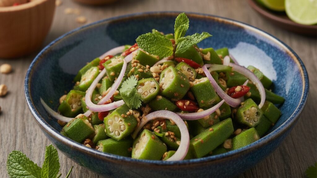 - ล้างกระเจี๊ยบเขียวอ่อน หั่นตามชอบ พักให้สะเด็ดน้ำ