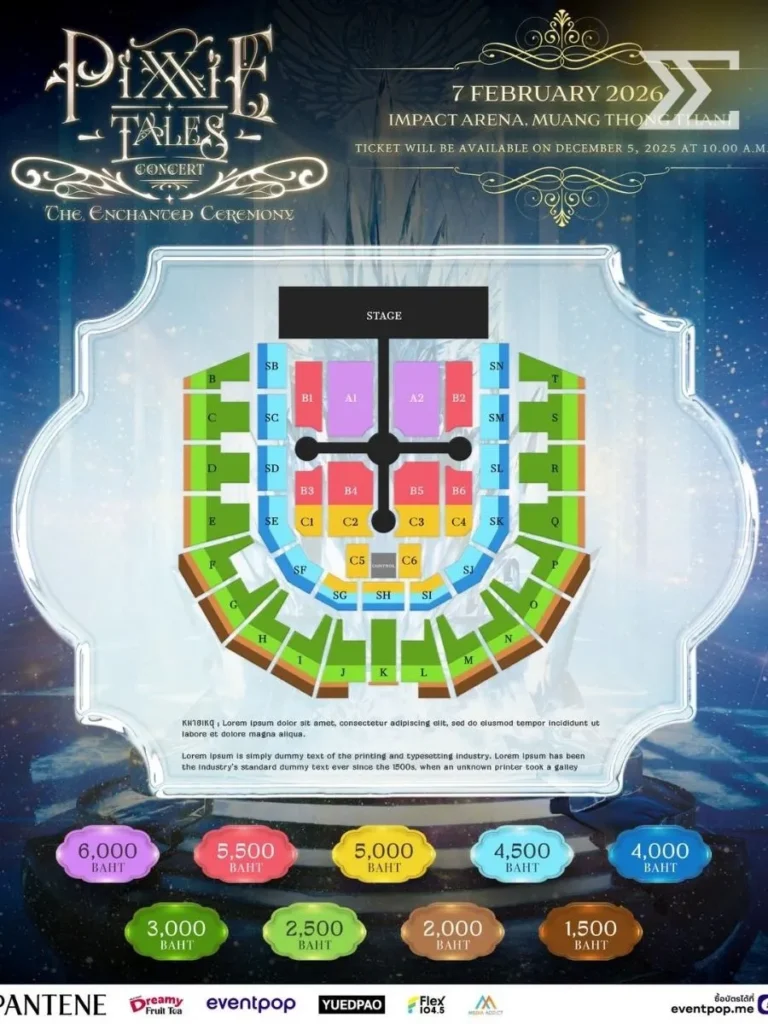 บัตรคอนเสิร์ต PiXXiE Tales Concert เปิดจำหน่ายแล้วบนแพลตฟอร์มอย่าง Eventpop พร้อมตัวเลือกที่นั่งหลายระดับตั้งแต่ประมาณ 1,500 – 6,000 บาท เพื่อให้แฟน ๆ เลือกตามความต้องการ โดยระบบจำกัดการซื้อบัตรและต้องลงชื่อก่อนทำรายการตามขั้นตอนบนระบบขายบัตรออนไลน์