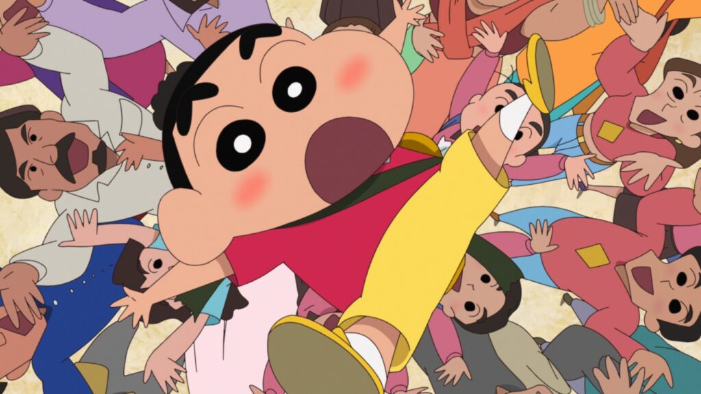 หลังจากได้รับความนิยมจากมังงะ “เครยอนชินจัง” ถูกสร้างเป็นอนิเมะและออกอากาศครั้งแรกทางสถานี TV Asahi ในปี 1992 เพียงหนึ่งปีถัดมา ก็ถูกพัฒนาสู่จอภาพยนตร์ในเรื่อง Crayon Shin-chan: Action Mask vs. Leotard Devil และต่อยอดกลายเป็นธรรมเนียมประจำปีอย่างต่อเนื่อง จนถึงปัจจุบันที่มีหนังโรงออกมาทุกปี รวมแล้วมากกว่า 30 ภาค หลายภาคกลายเป็นผลงานทำเงินอันดับต้นๆ ของญี่ปุ่น และถูกฉายในประเทศต่างๆ ทั่วโลก รวมถึงประเทศไทยที่แฟนๆ ยังคงติดตามอย่างเหนียวแน่นไม่แพ้กัน