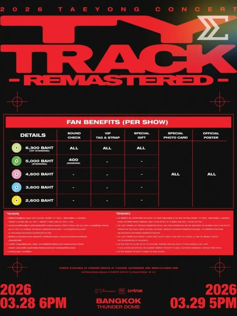 แฟน ๆ NCTzen เตรียมตัวให้พร้อม เพราะ Taeyong กำลังจะกลับมาสร้างปรากฏการณ์ในไทย กับคอนเสิร์ตเดี่ยวเต็มรูปแบบครั้งแรก “2026 TAEYONG CONCERT <TY TRACK – REMASTERED> in BANGKOK” ที่ขนทั้งพลังการแสดงและตัวตนของศิลปินมาแบบจัดเต็ม