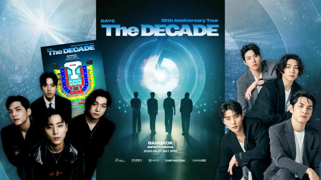 15 Sep, 2025เตรียมใจให้พร้อม My Day(ชื่อแฟนคลับวงDAY6) ทั้งหลาย เพราะ DAY6 กลับมาแล้ว พร้อมกับทัวร์สุดยิ่งใหญ่ฉลองครบรอบ 10 ปีในวงการดนตรี “The DECADE” ไม่เพียงแต่เป็นชื่ออัลบั้มใหม่ที่แฟนเพลงตั้งตารอ แต่ยังเป็นการกลับมาที่ใหญ่ที่สุด ทั้งจากผลงานเพลงที่แข็งแรงและบทเพลงฮิตที่รวมไว้มานาน ถึงเวลาที่เสียงกีตาร์ เสียงกลอง และเสียงร้องของ Sungjin, Young…